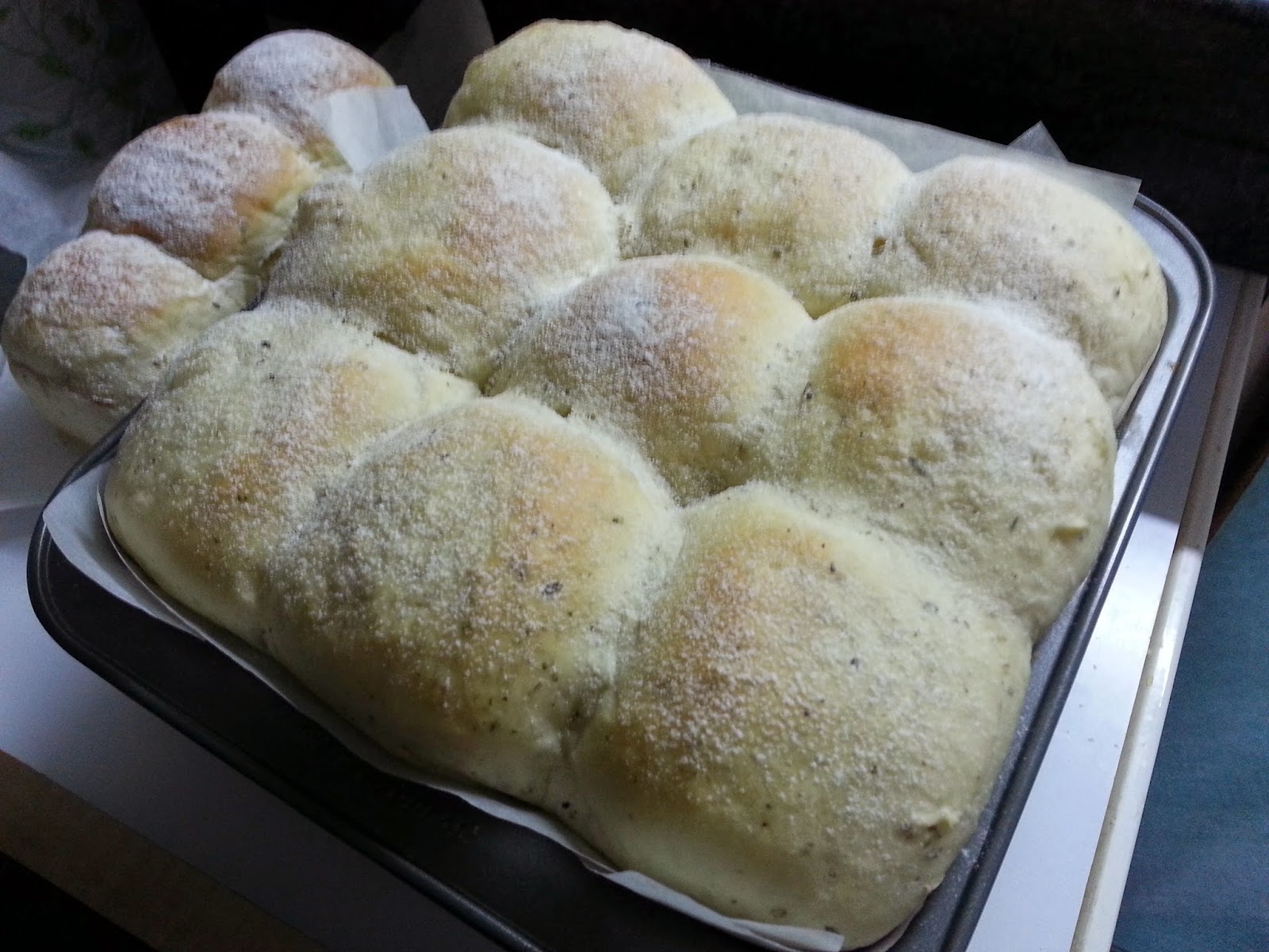 麵糰攪勻和發酵後,取出用手按壓麵團,擠出空氣。切割成12等份,滾圓。用保鮮膜蓋著,室溫靜置10- 15分鐘。